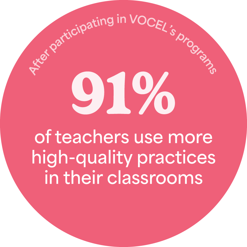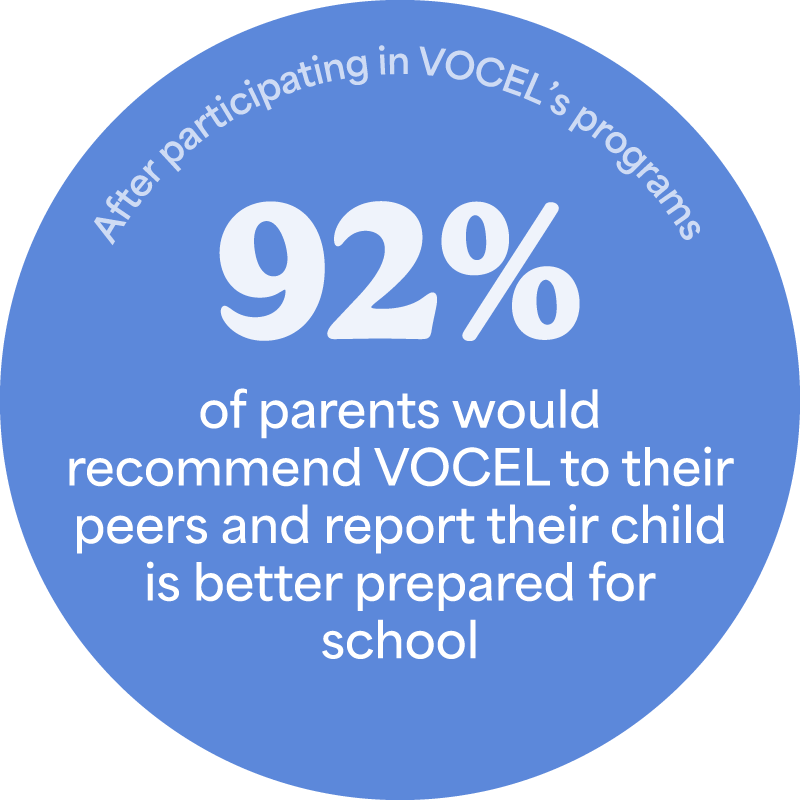 Day in and day out, all of VOCEL’s programs help parents and educators leverage nurturing, responsive relationships and play-based instruction as conduits for exemplary language development in children.