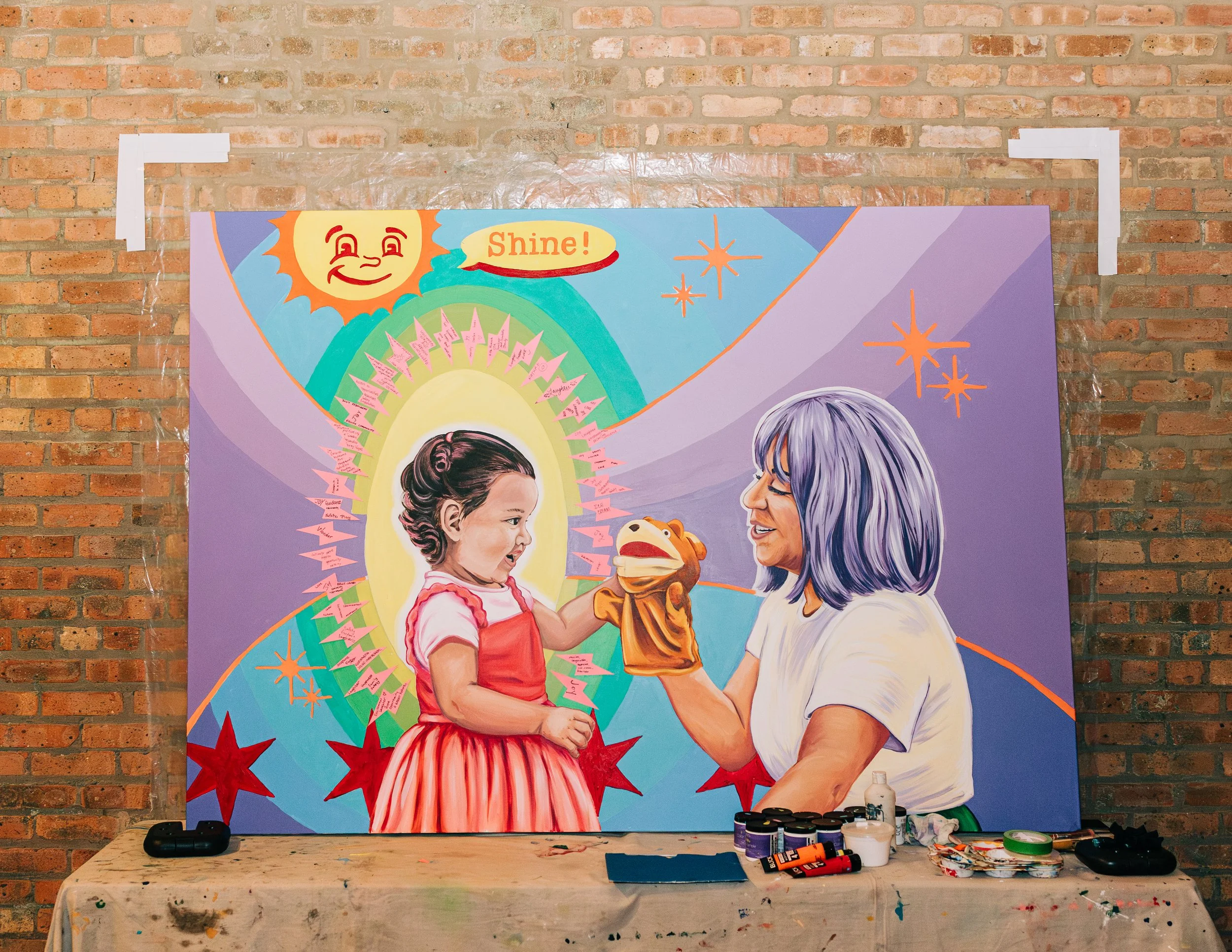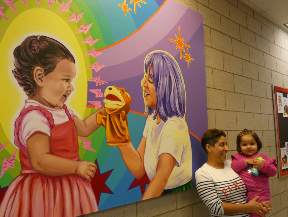 Patricia “Paty” Blanco is a VOCEL parent leader at Davis Elementary who attended IMAGINE with her fellow Powered by VOCEL leaders, expecting a fun evening of celebration. She never anticipated that Lea and Dustin’s mural would be inspired by a picture of her and Olivia, the spirited young child she cares for, playing together during their weekly VOCEL class. “When I saw it [at the event], I felt like I couldn’t breathe,” Paty says (translated from Spanish). “I even cried! I said, ‘How can this be possible?’”